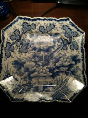 This plate came to me from my grandparents. My grandmother wrote a note with it to tell me that it once belonged to my grandfather's grandmother (b. 1861, married 1879) who lived in Watsonville and later Lonoak, CA.