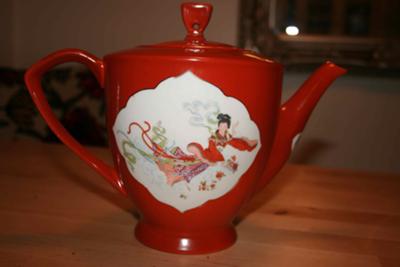 What I was curious about however, are the Chinese symbols on the spout. I have never seen that before and wondered if you could tell me the significance? I thought at first it might be a saying or message, but then I thought it could be a signature. I found it odd the placement, since my Aunt whom is Chinese told me that facing the spout toward someone is basically rude.