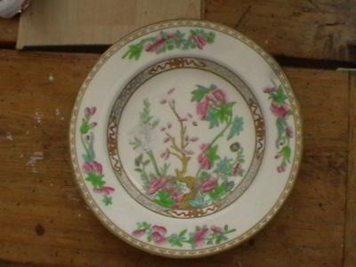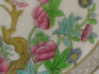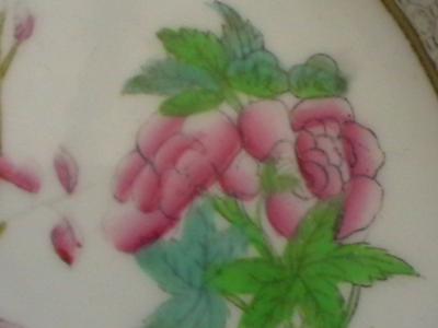 hi peter i just picked this lovley old plate up yesterday for a pound,it was very dirty ,on gentle cleaning discovered the off yellow is gold paint ,on closer examination parts of the overglaze have worn ,revealing the first drawing of the design and then colour ,the last detail has worn off ,has no marks at all .but it does look very chinese .any help greatly appreciated thank you annette
