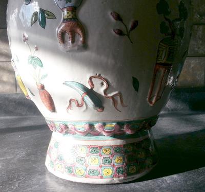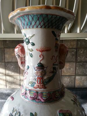 Hello. I purchased this vase online and the description was "antique Chinese vase". It is very large and weighs approx. 20 lbs. It is unmarked. I was hoping to gain some information on its age, style and perhaps value range. Your help is greatly appreciated.