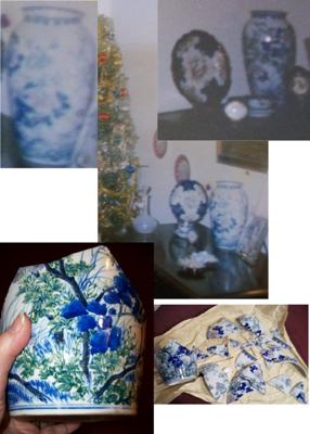 Can anyone give me a better handle on identifying what was originally an exquisitely beautiful baluster vase with flared neck? My late father inherited it from a very wealthy family back in the 1920's. When we were growing up my father always referred to it as the "Ming", and I find similar colors in use in Doucai Chenghua period pieces. I need to properly identify it for the insurance company representing moving company which destroyed it. Here's a page giving both background of the vase as well as a number of photos in addition to the ones uploaded here: