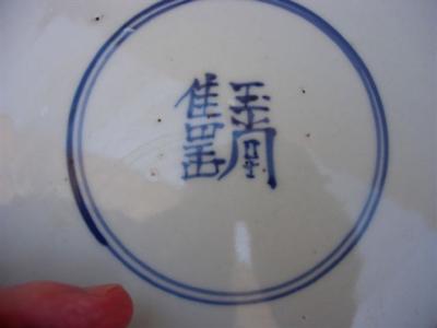 There are two marks, the centre one is underglaze blue and the other appears to have been burnt into the china.