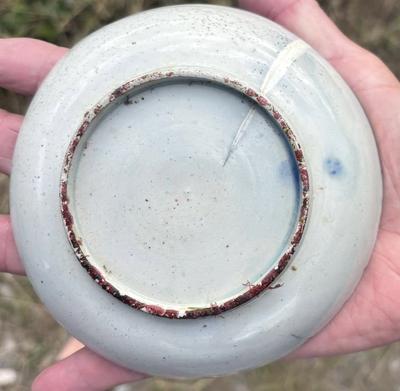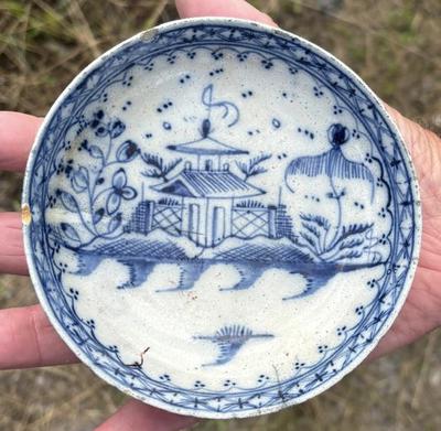This dish found recently whilst diving off the coast of UK. Trying to find maker, year etc.What intrigued me was the fact it had been repaired. To my eye the repair looked expertly done. So why did it end up at the bottom of the sea?