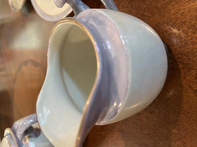 Mine is very delicate porcelain with mother of pearl. As I look at some of the cups from the top they are not perfectly round it is so fine.