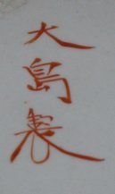 I have been able to determine (by local sushi house owner) that the first character means "Big" and the second means "Island" it was suggested that the third might be a "Oshima Sei" mark.