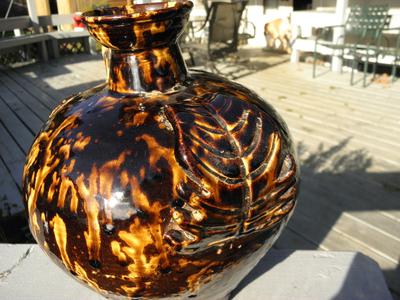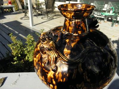 Hi again, here is a ewer that I picked up at the auction, I bought it because I liked it, the glaze is very nice, I have seen Chinese porcelain with this glaze before, I do not no much about it, I can see there is some age signs, I do not know even if that is what this is, Sanci glazed porcelain, please let me know how old you think this is and what it is thanks from stan I will send more photos, the ewer is 27.94 cm high and the width from one side to the other side of the leaf shaped handle is 24.63 cm