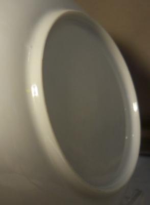 Here are the pics that you requested of the footrim of the saucer. Also included is the inside of the cup showing an impurity spot that has surfaced. Thank you very much for your knowledge and information.