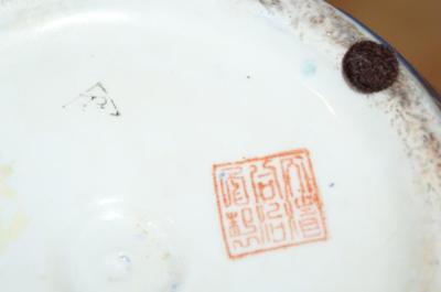 Can anyone help me identify the markings on this jar? I think the red stamp is Tongzhi? What does the black triangle with the 72 in it mean? Does it have any value? Thanks in advance!