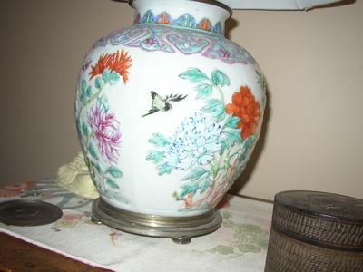 I have a vase (which was made into a lamp) which is nearly exactly like that on your home page. its ground is milky white with raised details of peonies, chrysanthemums, birds, branches, etc., built into the porcelain apparently before painting and glazing. I know it to be of value as I had it appraised more than 30 years ago. I wonder where to inquire about its possible value in the auction market.