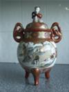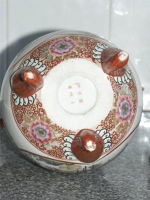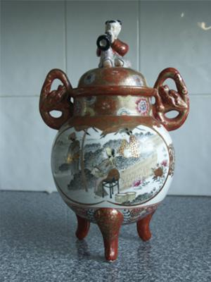 Hello, It looks like a censer (for burning incense powder), but lidded censers normally these have holes in the lid. The picture resolution is insufficient to see details or read the mark. From the shape, colors and overall impression of the painting this censer is either Japanese, modern, or both.