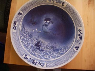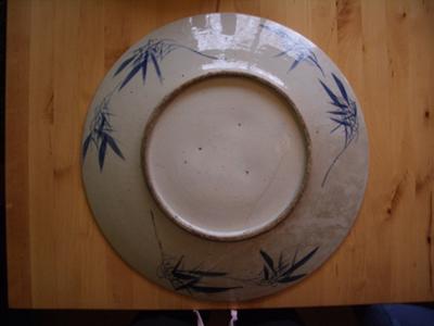 This is a family piece and is damaged...that doesn't matter to me, I LOVE it! Can anybody tell me anything about it? All I have is a yellowing photograph with the words "Imari platter 1910 " handwritten on the back. So far, I have not been able to locate any pictures of it on line. It is 18 3/8" in diameter and as you can see by the back, no markings. Thank you! Margaret :>)